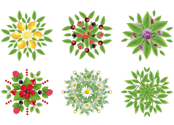 Axxent Tea of Life. Losse illustraties gevormd tot een caleidoscoop achtige vorm.