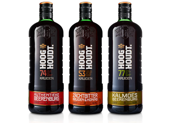Hooghoudt Kruidenbitters. Voor Proud! dit design op deze nieuwe stoere fles uitgewerkt.