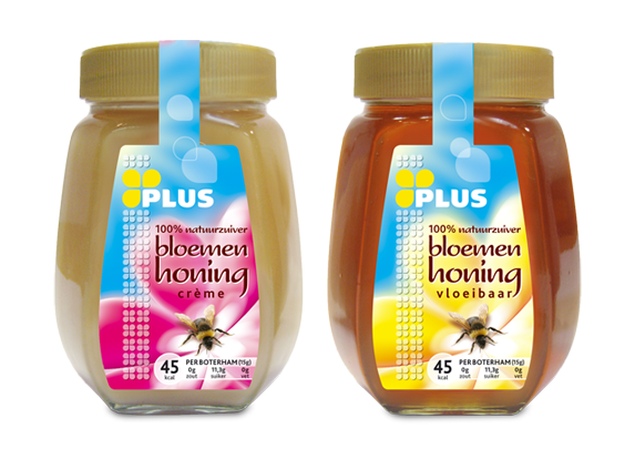 Plus supermarkt. Voor deze honing heb ik zowel het ontwerp als het artwork voor mijn rekening genomen.